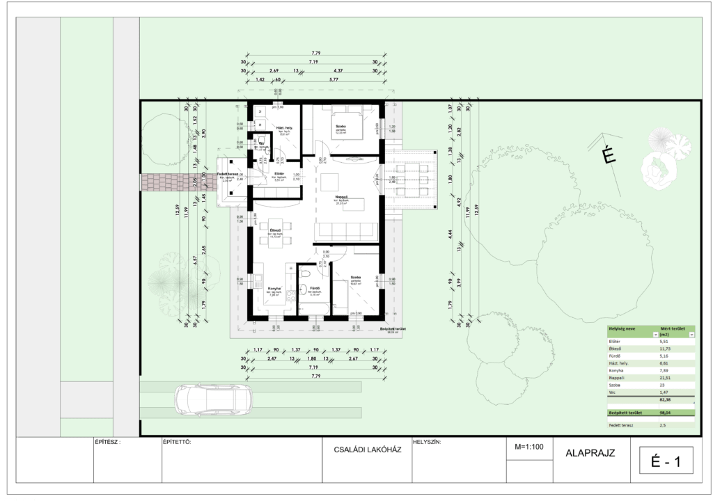 Chile típusterv az alábbi helyiségeket tartalmazza: