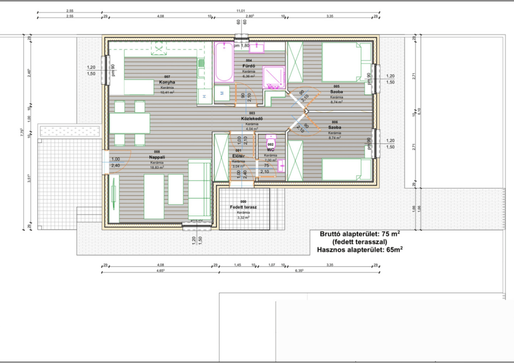 A Jolly1 típusterv az alábbi helyiségeket tartalmazza: